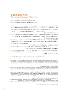 Honors and Stakeholders’ Comments 法权益;努力为员工成长提供全面的职业发展通道和广阔的发展空间,助力员工成就自我价值;与员工共享企