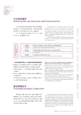 We also believe in responsible procurement and integrating 分包商是我们持续发展的劳务主体。我们积极转 Subcontractors are a key part of labor services and