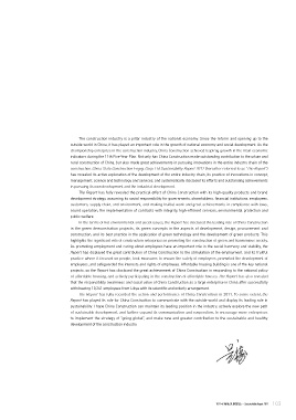 佳实践,彰显了建筑企业在推动绿色和谐社会建设中的重要作用。促进就业和员工关爱对社会和谐稳 Report has displayed the great contribution of China Construction to the stimulation of the employment, and its fruitful