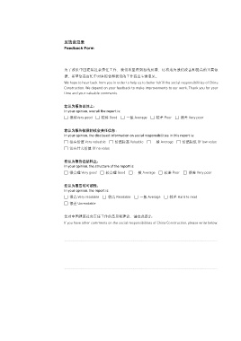 社会责任工作,我们希望得到您的反馈,这将成为我们改善和提高的重要依
